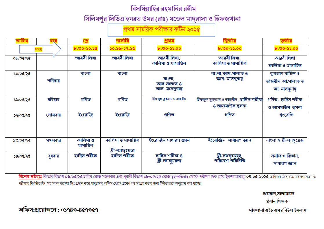 ২য় সাময়িক পরীক্ষার সময়সূচি -২০২৫(প্লে-প্রথম)